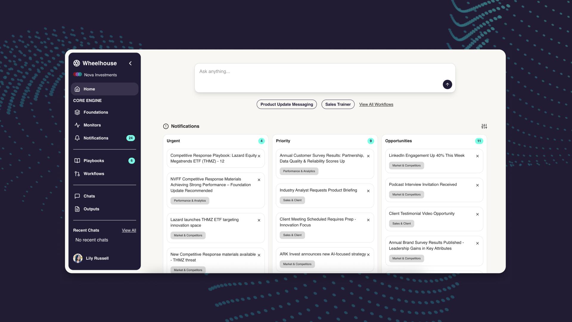 Wheelhouse AI understands your business, brand and goals. So you can quickly align your teams around strategy and create powerful messaging and content.