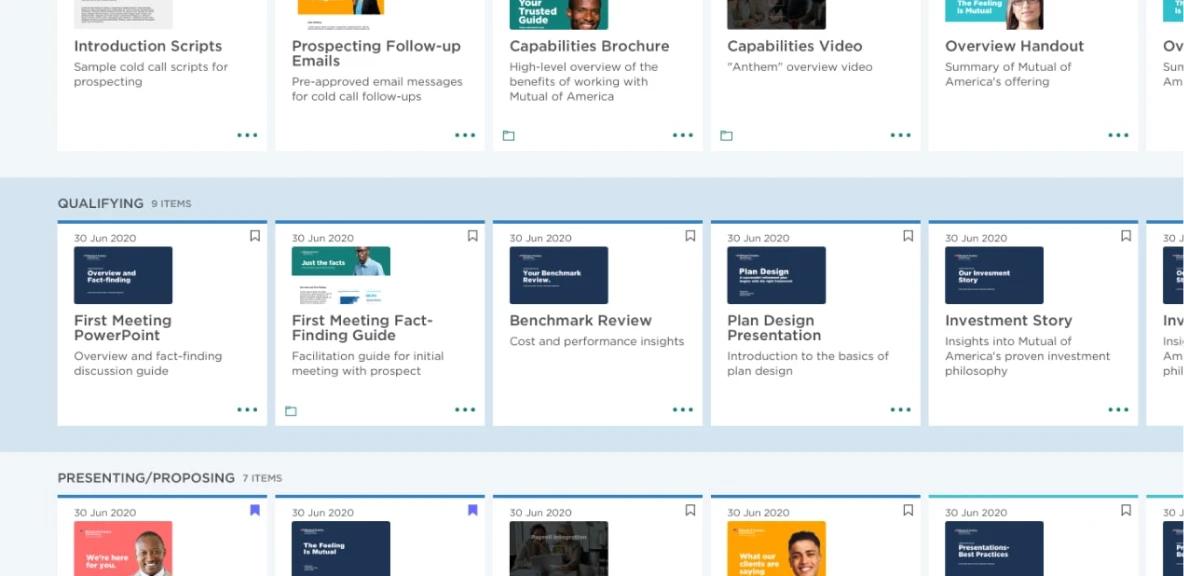 The bespoke sales enablement system—LiveBase—helped ensure salespeople always have the right materials available at the right moment in the sales cycle. Much more than a static database, LiveBase is a solution that guides salespeople and facilitates sharing of best practices, empowering the entire team to work smarter by doing more of what’s successful. Additionally, LiveBase is integrated with Mutual of America’s enterprise CRM solution, helping ensure a unified, holistic customer view.